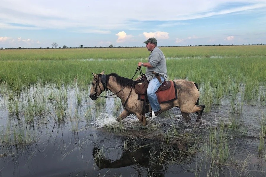 Living remotely has required a firm ability in animal husbandry and horse care. Most of our horses arrive ‘green’ and are gentled by Doug personally. Once Doug is confident that they are schooled well enough, they are ridden on the plains by our horse wranglers Mukela and Thomas where they are slowly introduced to the bush and wildlife. All our horses are forward going, steady and have gentle natures.